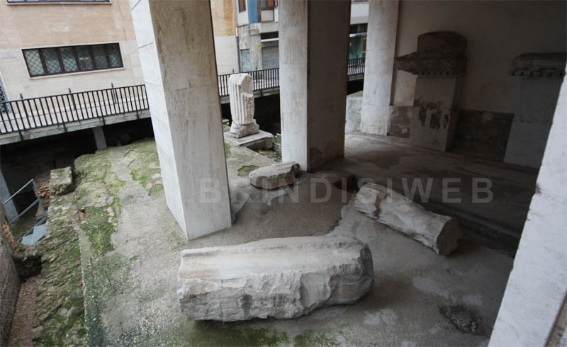 Su quest’area, nel 1957 durante la costruzione dell’edificio dell’Istituto Autonomo Case Popolari, vennero alla luce i resti di un edificio pubblico risalente ad epoca imperiale (prima metà del II sec. d.C.) e i pavimenti di nuclei abitativi di epoca repubblicana (I-II sec. a.C.).