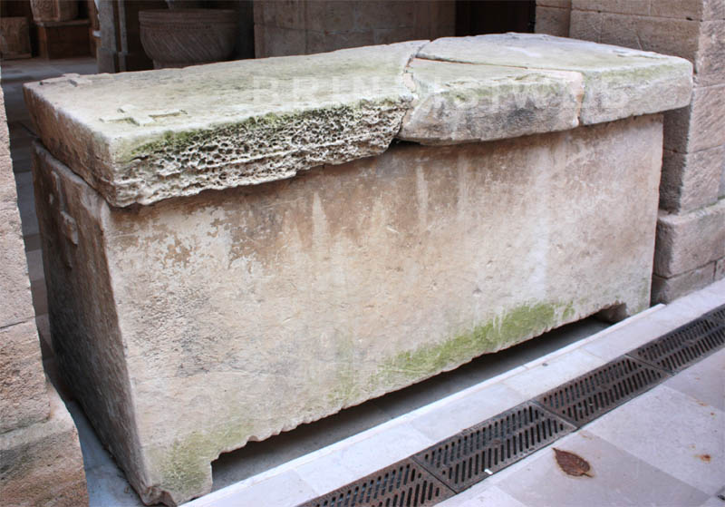 Lo scavo archeologico si protrasse sino al 1959 e fu condotto, purtroppo, senza un criterio stratigrafico, ‘seguendo i muri’ e distruggendo i livelli di età medievale1. Si salvarono solo alcuni reperti oggi conservati presso il Museo Prov.le, ovvero il sarcofago “vetero-cristiano” in pietra locale di tipo palestinese, con croci in rilievo a braccia uguali ed il lastrone di copertura spezzato, con lati inclinati all’interno che gli conferiscono l’aspetto di un tronco di piramide quadrilatera e la lastra votiva con rappresentazione del volatile che becca il ramo di un vegetale, riferibili al tardo VII secolo e pertinenti probabilmente alla chiesa di San Pelino2.