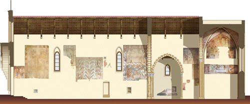 Lo studioso concludeva: “Perché questo rinvio (o altro di diversa geografia, fra Italia settentrionale ed Europa) sia convincente non solo visualmente, ma anche “archeologicamente”, sarebbe necessaria un’indagine, per così dire, in corpore vili, a certificare la possibile estraneità genetica del capitello (ovvero, dei capitelli) al aparato murario e a valutarne la sua originaria forma plastica, al di sotto dell’imbiancatura subita. Solo allora potrà stabilirsi, con più certezza (o con minore incertezza) se qui si tratta di un reimpiego oppure di una sorte di imitazione trecentesca, peraltro sbalorditiva ed eventualmente non meno interessante per l’unicità del caso”.