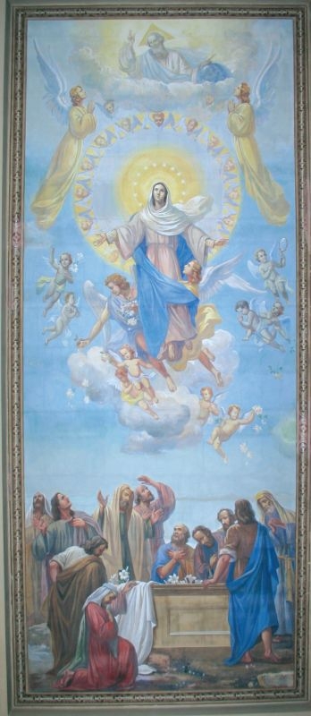 L’edificio sacro venne ricostruito sulle medesime fondamenta ad opera del Genio Civile e fu aperto al culto il 14 dicembre del 1947, sei anni dopo il triste evento, con rito solenne officiato dall’arcivescovo Francesco De Filippis. Per le rifiniture interne fu poi deciso di far affrescare a tempera il soffitto dell’unica navata, l’incarico venne affidato al pittore barese Umberto Colonna, che nel 1950 realizzò una grande opera raffigurante l’Assunzione di Maria in Cielo. Dello stesso artista, le cui pitture sono presenti in altre chiese di Brindisi, anche le rappresentazioni dei santi Paolo e Pietro sulle pareti di accesso al presbiterio.