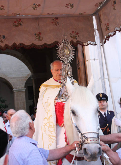 Istituita nel 1264 la festa del Corpus Domini, e volendo conservare memoria dell’avvenimento, si ottenne il privilegio di continuare nel corteo processionale del Santissimo Sacramento sul dorso di un cavallo bianco, una funzione conservata per oltre sette secoli e mezzo e interrotta purtroppo nel 2018, nell’occasione della caduta da cavallo dell’arcivescovo Domenico Caliandro. A ciò si aggiunga il furto del prezioso ostensorio del pellicano mistico, realizzato nel 1706 dall’argentiere Antonio Alvino e per secoli utilizzato dai vescovi di Brindisi nelle processioni del Corpus Domini, avvenuto nel marzo 2023 insieme ad altri oggetti sacri trafugati dal Museo diocesano.