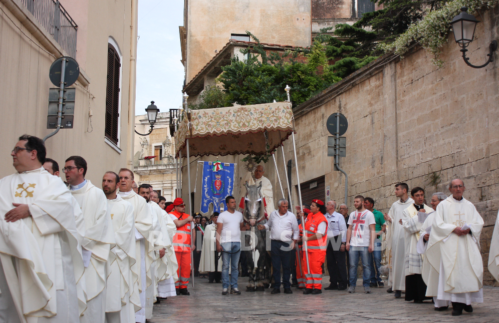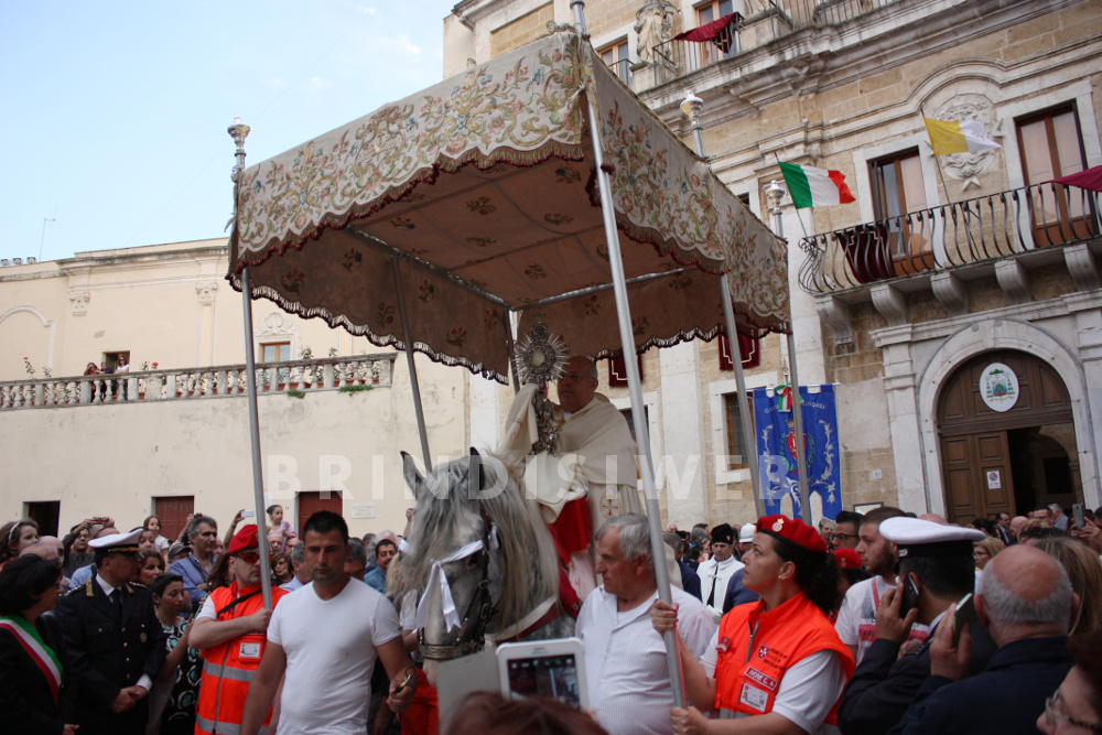 In precedenza lo stesso tragitto, veniva percorso dall’Arcivescovo di Brindisi sul dorso di un cavallo bianco che camminava su un tappeto di petali di fiori e con tanti i balconi riccamente addobbati con drappi e coperte. La folla dei fedeli si assiepava numerosa ai lati delle strade e accompagnava la processione sino al suo rientro in Cattedrale.