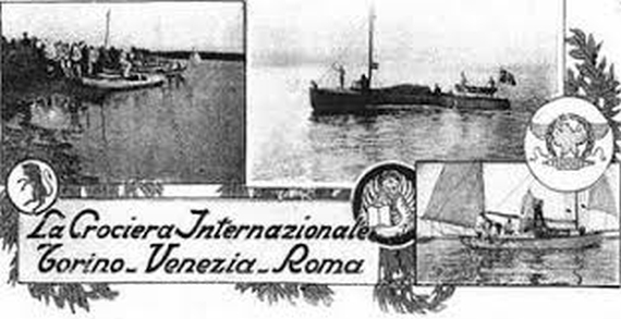 Nel 1911 i tempi erano ormai maturi per organizzare qualcosa di più impegnativo, pertanto su iniziativa della Commessione del Touring Club Italiano, presieduta dal senatore Giuseppe Colombo, coadiuvato dai membri cav. Arturo Mercanti e Antonio Mainoni, per celebrare il cinquantenario dell’unità d’Italia venne organizzata “una crociera motonautica da Torino a Roma passando per il Po fino a Venezia e poi costeggiando quasi tutta l’Italia – spiega l’ex pilota Albero Mondinelli1, giornalista con lunga esperienza nella stampa nautica – non era vera gara, ma voleva solo dimostrare la possibilità di circumnavigare le coste della penisola”. La competizione si sviluppava su tre crociere distinte, la prima fluviale da Torino a Pavia, partita il primo di luglio e riservata a ventidue imbarcazioni a remi “diversissime di foggia e di capacità”, quindi, per la maggior profondità del fiume Po, da Pavia il 5 luglio venne iniziata la crociera motonautica con canotti leggeri ed arrivo a Venezia tre giorni dopo. Nella città lagunare il 9 luglio vi fu dapprima l’esposizione dei sette motoscafi che presero parte alla terza parte dell’originale manifestazione sportiva, la Crociera Marittima, partita alle ore 4 del mattino successivo dal bacino di San Marco, la più difficile ed impegnativa. Le 1.200 miglia complessive del tragitto vennero coperte in undici tappe, sei delle quali nelle acque “ferrigne, amare e irose dell’Adriatico”: Venezia, Ancona, Ortona, Manfredonia, Bari e Brindisi. La crociera proseguì poi nelle acque “convulse e azzurre dello Jonio, alle tranquille, opaline del Tirreno, alle bionde correnti del Tevere”, si legge ancora sul reportage del Touring, prima di giungere al traguardo di Roma, dove la grande impresa marinara, antesignana delle future competizioni di offshore e concepita per unire via acqua la prima capitale dello stato unitario con la capitale storica dell’Italia, ricevette la meritata consacrazione del suo successo.