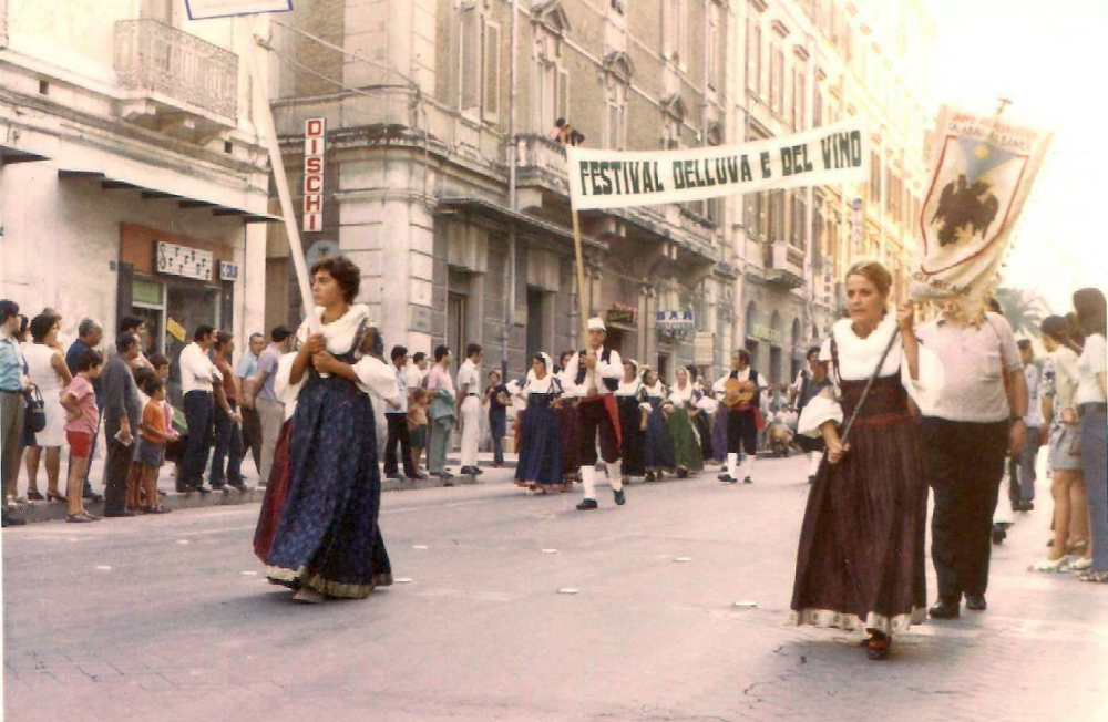 Nel secondo dopoguerra ci furono alcuni tentativi per riproporre l’interessante appuntamento, ma solo dopo molti anni, nel settembre del 1965, si riuscì a organizzare un evento che riscosse sin da subito un notevole successo di pubblico, lasciando negli anni un segno indelebile nella memoria storica cittadina: il “Festival dell’Uva e del Vino”. Per tutti i brindisini era semplicemente “La Festa dell’Uva”, un avvenimento molto popolare ma sempre ben organizzato dall’Ente Provinciale per il Turismo di Brindisi, che prevedeva coloratissime sfilate di bande, majorettes e di straordinari carri allegorici ornati di tralci, uve e fiaschi di vino sui corsi principali, con numerosi chioschi folkloristici riccamente addobbati sul lungomare e nel piazzale Lenio Flacco. L’esposizione merceologica promozionale dei prodotti delle nostre terre avveniva al richiamo irresistibile di “grappolo da gustare e bicchiere da sorseggiare”, mentre gli spettacoli di solito prendevano il via verso le ore 18, in maniera da far coincidere i tempi di sosta dei turisti in città e renderli partecipi alle varie e divertenti iniziative. Durante le ultime edizioni si perse però quel senso originale della festa, la manifestazione pian piano assunse un tono banale, con bancarelle che vendevano cianfrusaglie che nulla avevano a che fare con l’uva e il vino.
