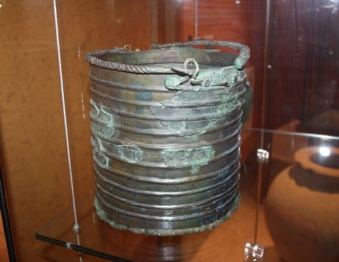 Nel corredo erano presenti anche reperti in bronzo, come un recipiente di forma cilindrica (cista) con doppio manico semicircolare e una brocca in bronzo (oinochoe).