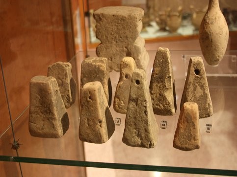 Un altro tipico esempio di ceramica messapica sono i pesetti da telaio o piramidetti.