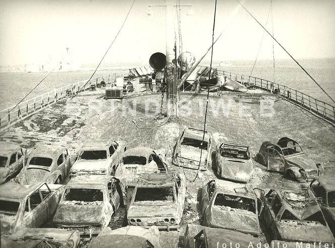 Foto testimonianze di Adolfo Maffei, che da corrispondente dell’Ansa di Bologna e come giornalista fu uno dei primi a salire a bordo della nave. Con Remigio Benni realizzò una serie di reportage sul tragico avvenimento, con le immagini della nave devastata dall’incendio. Il sig. Maffei ha voluto condividere alcune delle immagini più significative di quell’esperienza.