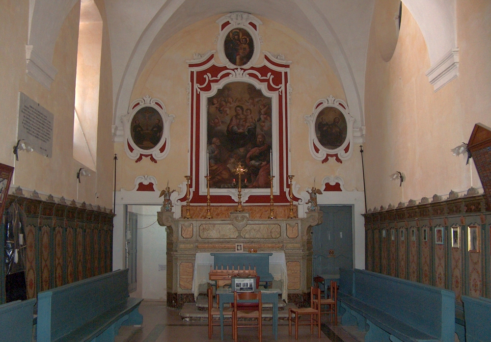 L’esterno è semplice in tufo con tre cupolette a trullo, all’interno tracce di affreschi in stile bizantino.