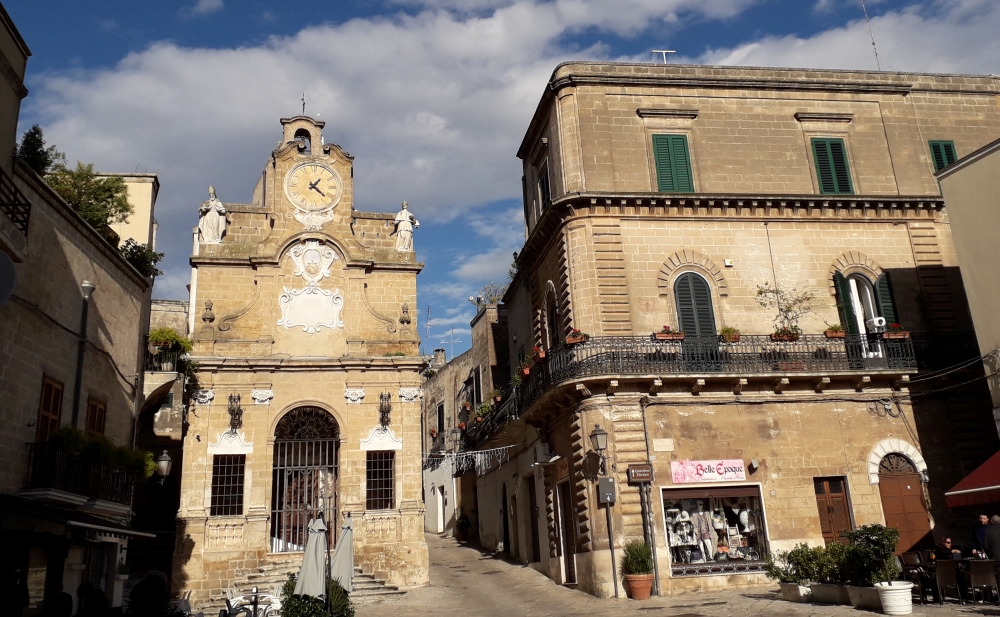 Oltre la porta l’ampia piazza sul quale si erge il Sedile, un settecentesco palazzo a torre quadrata che fu la sede dei Decurioni, chiamata per questo Seggio dei Nobili. Sulla facciata, al centro tre le due statue di santi s’innalza il campanile a vela e l’orologio.