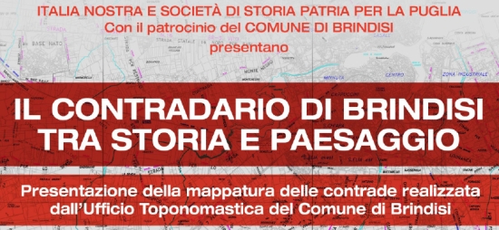L’Ufficio Toponomastica del Comune di Brindisi ha di recente realizzato il censimento e la mappatura delle contrade dell’intero territorio, un lavoro (peraltro in continuo itinere) cui va riconosciuta una valenza che trascende il mero dato tecnico.