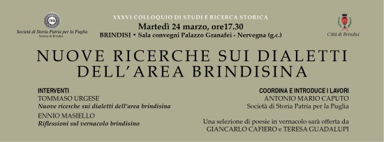 La fotografia scattata dall’Istat e che si riferisce al 2012 informa che oltre la metà, il 53,1% delle persone di 18-74 anni (23 milioni 351mila individui) parla in prevalenza italiano in famiglia segnando un calo considerevole nell’uso del dialetto. Secondo l’Istituto di Statistica, a difendere l’uso della lingua italiana sarebbero soprattutto le donne, che in grande percentuale accantonano l’idioma dialettale. Dal 1995 al 2012 è aumentata costantemente la quota di chi usa l’italiano in modo prevalente o abbinato al dialetto. L’uso prevalente dell’italiano decresce con l’aumentare dell’età a favore dell’uso esclusivo e combinato al dialetto: in famiglia varia dal 60,7% dei giovani di 18-24 anni al 41,6% dei 65-74enni. Le donne mostrano una maggiore propensione a esprimersi soltanto o prevalentemente in italiano in famiglia e con gli amici. La ricerca ISTAT giunge circa cinquant’anni dopo la famosa denuncia di Pier Paolo Pasolini, il quale scriveva: «Fra le altre tragedie che abbiamo vissuto (…) in questi ultimi anni, c’è stata anche la tragedia della perdita del dialetto, come uno dei momenti più dolorosi della perdita della realtà». Di recente Laterza ha pubblicato il libro-dialogo La lingua batte dove il dente duole firmato a quattro mani da Andrea Camilleri e Tullio De Mauro. Sulla base di queste considerazioni la sezione di Brindisi della Società di Storia Patria per la Puglia, Brigata Amatori Storia e Arte, attiva dal 1935, col patrocinio del Comune di Brindisi, ha promosso per il prossimo martedì 24 marzo, con inizio alle ora 17.30, in Brindisi (Sala convegni Palazzo Granafei – Nervegna g.c.), il XXXVI Colloquio di studi e ricerca storica su Nuove ricerche sui dialetti dell’area brindisina. Si prevedono gli interventi di TOMMASO URGESE su Nuove ricerche sui dialetti dell’area brindisina e di ENNIO MASIELLO, Riflessioni sul vernacolo brindisino. Coordina e introduce i lavori ANTONIO MARIO CAPUTO. Una selezione di poesie in vernacolo sarà offerta da GIANCARLO CAFIERO e TERESA GUADALUPI. Come rilevato dal prof. Franco Fanciullo, dell’università di Pisa, l’interesse precipuo del lavoro lessicale che Tommaso Urgese ha dedicato ai dialetti salentini settentrionali, risiede nella marginalità delle voci pazientemente vagliate e messe insieme attraverso, fra l’altro, la rassegna di un numero per nulla esiguo di lessici nonché, più in generale, di lavori dialettali.