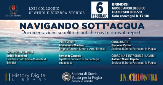 Il Gruppo Ricerche Archeologiche Subacquee di Brindisi (GRAS) in cui hanno operato Fernando Zongolo, Derio Camassa, Vanni Meneghini, Sandro Mariano e Gino Zongoli, ha contribuito in modo decisivo allo sviluppo dell’archeologia subacquea nel nostro territorio. Si tratta di un percorso iniziato negli anni ’70 dello scorso secolo con le prime segnalazioni e recuperi lungo le nostre coste, per proseguire con vere e proprie campagne di scavo sistematico. Vanno qui ricordate anche altre personalità che hanno contribuito allo sviluppo della ricerca archeologica sottomarina dell’area brindisina, come la dott.ssa Benita Sciarra, direttrice del museo Ribezzo dal 1973 al 1991, forte sostenitrice delle attività del GRAS, il prof. Nino Lamboglia del Centro Sperimentale di Archeologia Sottomarina di Albenga, che ha contribuito alla nascita della sezione salentina del gruppo operante nell’ambito dell’archeologia subacquea; Gerard Kapitän, uno dei pionieri dell’archeologia subacquea, che con un gruppo di giovani sommozzatori operò tra Egnazia a Torre San Gennaro sin dagli anni ’60. Le attività di studio continuano con il lavoro “in solitario” di Fernando Zongolo e dei giovani archeosub, attentamente formati al lavoro meticoloso e particolare della ricerca archeologica sottomarina.