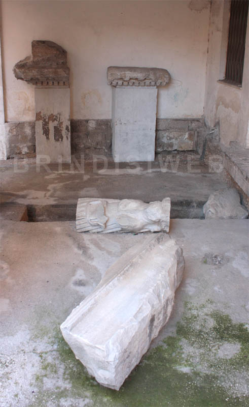 Nel terreno di riporto dello scavo furono rinvenuti numerosi frammenti d’intonaco (probabilmente di pareti decorate), di anfore e lucerne, frammenti marmorei3 ed una testa in marmo di età antonina (98 – 180 d.C.) attribuita ad Antinoo4, il giovane greco dalla singolare bellezza proveniente della Bitinia, odierna Turchia, amato dall’imperatore Adriano, oggi custodita nel deposito del Museo Nazionale di Taranto.