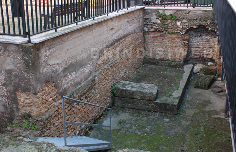 Su quest’area, nel 1957 durante la costruzione dell’edificio dell’Istituto Autonomo Case Popolari, vennero alla luce i resti di un edificio pubblico risalente ad epoca imperiale (prima metà del II sec. d.C.) e i pavimenti di nuclei abitativi di epoca repubblicana (I-II sec. a.C.).