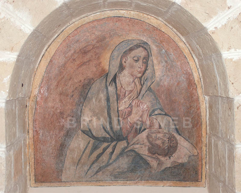 Altre importanti immagini mariane risultano ormai illeggibili, come la Vergine Maria dipinta sulla lunetta sovrastante l’ingresso della cappella di Masseria Albanesi.