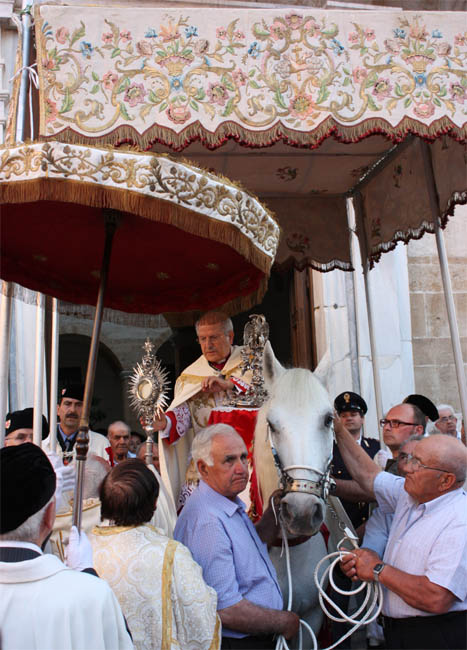 Questa singolare usanza religiosa è stata celebrata per circa otto secoli, sino al 2018, in occasione del Corpus Domini, quando il Vescovo portava in processione il Sacramento per le vie principali della citta’ montando su un cavallo bianco parato, a ricordo di un’antica tradizione che ha origine tra il 1248 e il 1254..