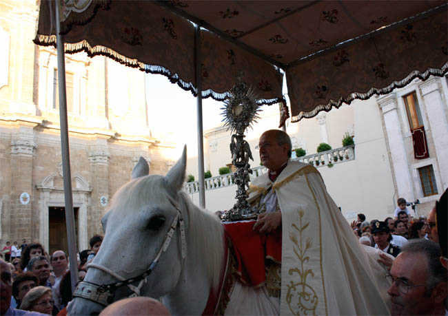 La tradizione cattolica della processione, da non intendere come una manifestazione folcloristica della religione, rappresenta invece sin dall’antichità l’elemento identitario per eccellenza della città, a cui il popolo è ancestralmente legato e che non ha mai distolto i fedeli dal suo reale significato. Al centro di tutto c’è sempre il Santissimo Sacramento: il passaggio tra le strade principali dell’Eucarestia è una esperienza di fede che alimenta il senso della cristianità nella gente.
