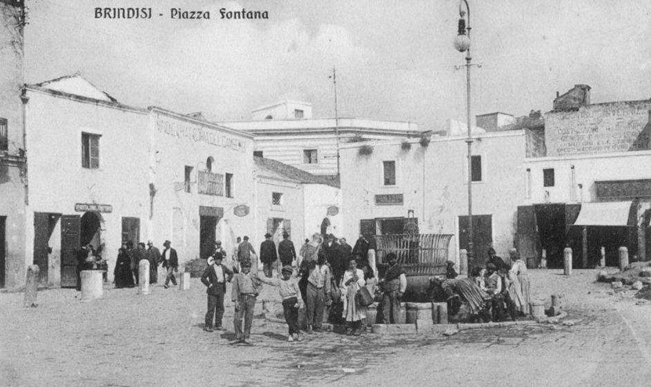 Il progetto, che fu realizzato in tempi brevi e con ottimi risultati, prevedeva anche la sistemazione delle antiche condotte idriche realizzate in epoca romana che da Pozzo di Vito (scheda) portavano l’acqua alle vasche limarie di Porta Mesagne (scheda) e quindi sino al Bastione san Giorgio. Da qui fu creata una nuova condotta che giungeva alle fontane, la prima denominata di Crisostomo era situata nei pressi di via Conserva, la seconda – quella maggiormente utilizzata dalla popolazione cittadina – nella piazza “di basso” (detta anche piazza rustica o della plebe, nell’ottocento divenuta piazza dei commestibili, oggi piazza della Vittoria), l’ultima sul lungomare tra le Colonne del porto e gli attuali giardinetti di piazza Vittorio Emanuele II, utile principalmente agli abitanti della marina e ai bastimenti.