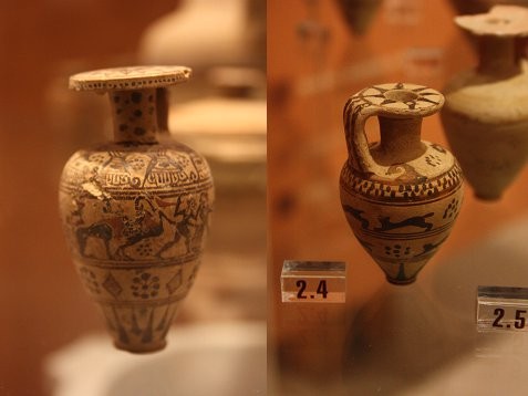 Sempre nello stesso luogo, negli anni ’50, furono trovate tre tombe ad incinerazione ed una ad inumazione. Di particolare interesse fu il pithos con all’interno cinque vasetti ariballoi.
