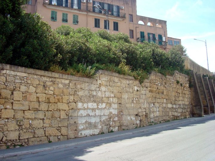 L’insediamento urbano si sviluppava sulla collina di ponente del porto interno, difeso da possenti mura megalitiche che sfruttavano le differenze di livello con terrapiani di cui ne è un esempio il tratto ancora oggi visibile tra Corte Capozziello e Via Pasquale Camassa. Successivamente queste mura vennero rinforzate dai romani. Un altro tratto simile fu scoperto nel 1877 in piazza Sedile.