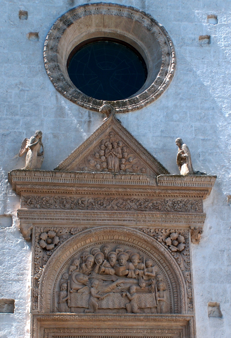 A lato il bellissimo portale con lunetta decorata con bassorilievo della chiesa dello Spirito Santo. Percorrendo la strada che porta al Duomo, tra negozi di artigianato e prodotti tipici locali, si giunge alla chiesa sconsacrata di San Vito Martire, conosciuta come chiesa delle Monacelle, che ospita una parte del Museo delle Civiltà Preclassiche della Murgia Meridionale. L’esterno è in stile barocco-rococò con cupola rivestita di mattonelle policrome, mentre all’interno interessanti i cori, l’organo e il pulpito lignei.