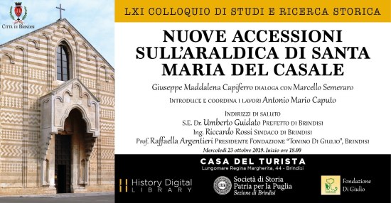 Mercoledì 23 ottobre 2019. Inizio ore 18.00. Brindisi, History Digital Library