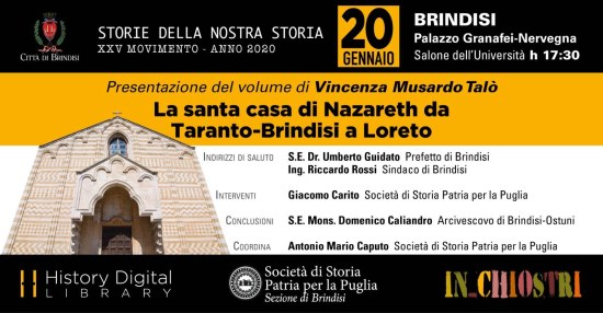 La ricerca rimette in discussione alcuni aspetti della storia della traslazione della santa casa di Loreto, puntando su inedite piste, nuovi assunti e alcune figure di protagonisti, che si muovono lungo un breve segmento temporale, interposto fra l’11 ottobre e il 10 dicembre del 1294. In primis, sono chiamati in causa il principe di Taranto, Filippo I d’Angiò e Thamar d’Epiro sua promessa sposa, oltre a Carlo II re di Napoli, il papa Celestino V e il domenicano Salvo, vicario pontificio e vescovo di Recanati; la città regia di Brindisi e la chiesa di Santa Maria del Casale costituiscono lo scenario su cui si muovono i fatti dell’ultima tappa del viaggio della santa casa di Nazareth: dal porto di Brindisi a Loreto. Il volume è aperto da una presentazione di Giuseppe Santarelli.