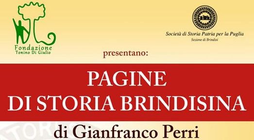La Fondazione Tonino Di Giulio in collaborazione con la Società di Storia Patria per la Puglia, sez. di Brindisi, presenta, martedì 24 settembre 2019 alle ore 18.00, il libro ”Pagine di storia brindisina di Gianfranco Perri, presso Casa del Turista, Lungomare Regina Margherita, 44 Brindisi.
