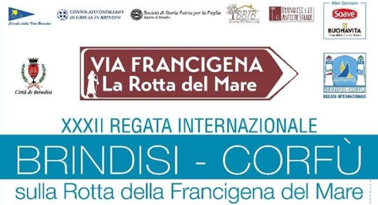 Lunedì 5 giugno 2017, in occasione della XXXII Regata velica Internazionale Brindisi – Corfù, la Società di Storia Patria per la Puglia, in collaborazione con l’associazione Brindisi e le antiche strade, il Circolo della Vela, BBTB – Associazione B&B Terra di Brindisi e il Comune di Brindisi, organizza un incontro di studi per la presentazione della Via Francigena del Mare, rotta storica sulla quale si attesta la Regata.