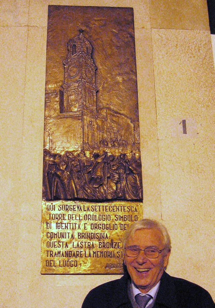 Nel 2006, nel luogo dove sorgeva l’antico campanile, è stato collocato un bassorilievo in bronzo rappresentante la torre dell’orologio e il popolo brindisino che si agita ai suoi piedi, realizzato e donato dal maestro Giuseppe Marzano al fine di conservare la memoria storica del monumento e dello scempio operato. La fusione del bronzo per la realizzazione del pannello è stata ottenuta con i soldi donati dai brindisini (un euro a testa), un modo per rimpossessarsi simbolicamente dell’antica Torre.