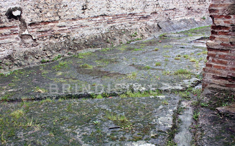 Anche tra la vasca minore e quella successiva a nord ©, quasi del tutto distrutta, vi era un muro divisorio (8) con un’apertura di 80 cm di larghezza posta a 60 cm dal pavimento. Di questa terza vasca resta solamente il muro dello spessore di 60 cm che si posa sulla parete a nord della vasca centrale.